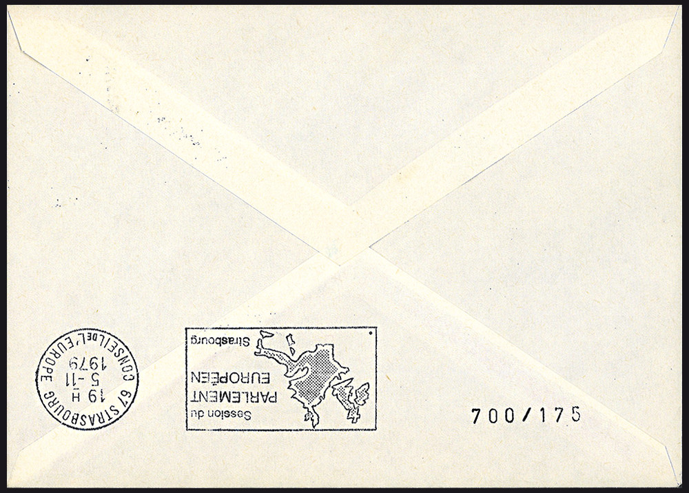 Correspondance philatélique "Berlin - Strasbourg, Conseil de lEurope" sur timbre de service "Conseil de lEurope" (cachets darrivée recto-verso).